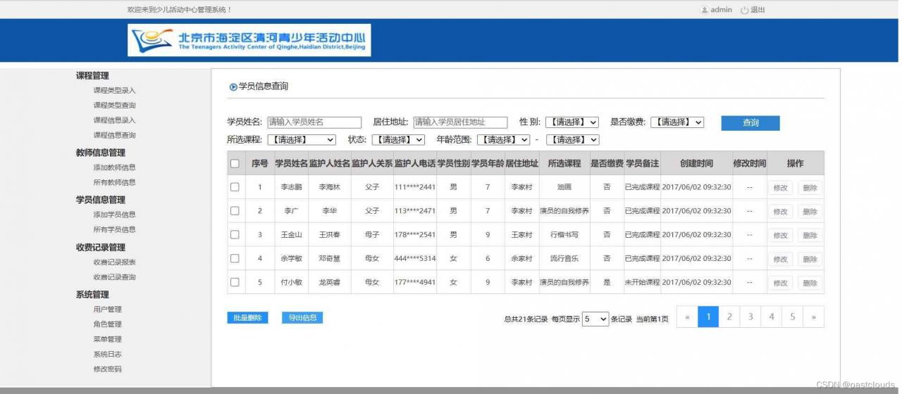 - 收费管理 查询学员课程的收费信息以及课程的收费报表