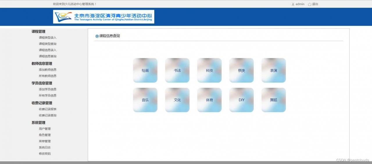 - 课程管理 管理活动中心的课程分类以及课程信息