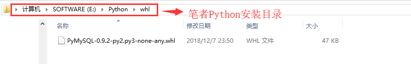 在Python安装目录下,新建一个whl目录(以后可以专门用来放置whl格式的python包),将刚下载的whl文件放入该目录下,如图: