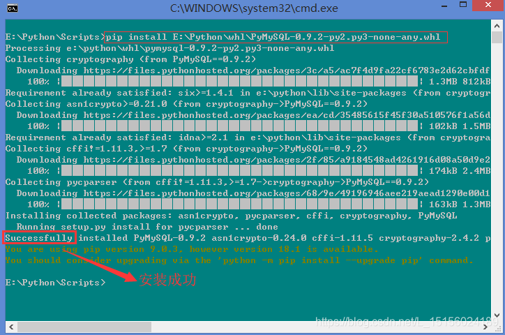 注:可以直接在命令窗口中执行pip install pymysql来安装。
