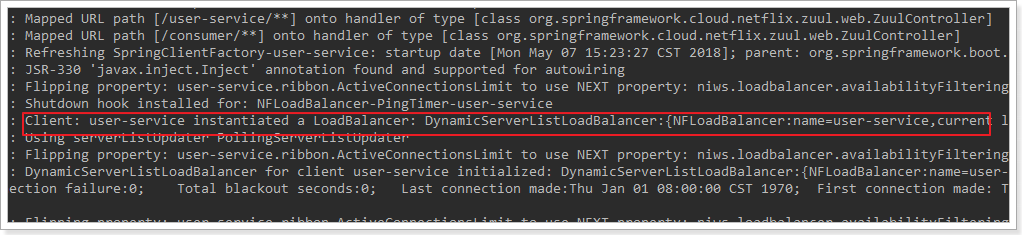 日志中可以看到使用了负载均衡器: