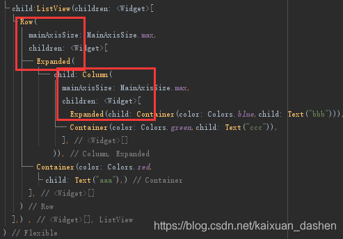 Expanded(child: Container(color: Colors.blue,child: Text("bbb"))),