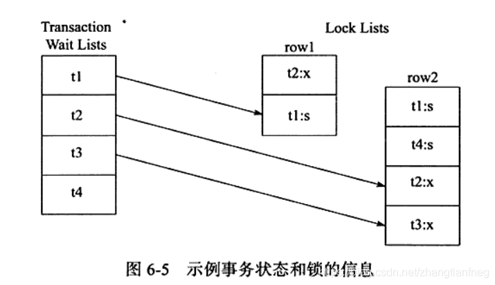 t2事务等待t1,t4释放的row2的资源