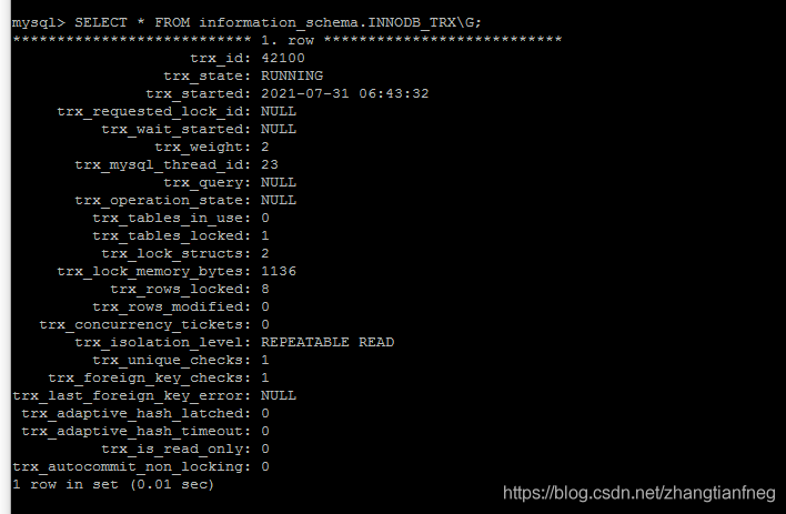 SELECT * FROM information_schema.INNODB_TRX\G;