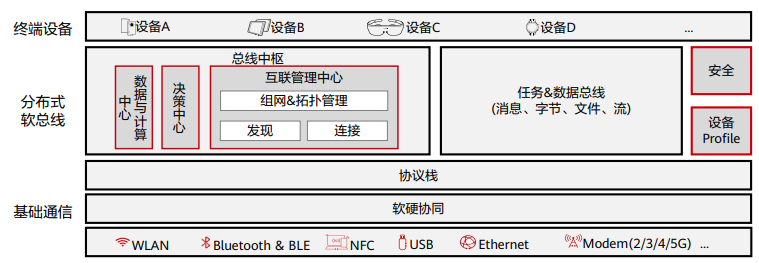 - 多种设备之间能够实现硬件互助、资源共享,主要依赖以下四个关键分布式技术。