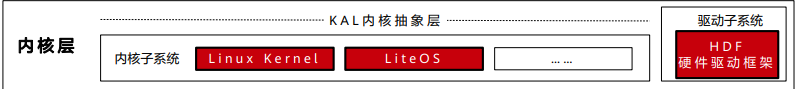 内核子系统:HarmonyOS采用多内核设计,支持针对不同资源受限设备选用适合的OS内核。 内核抽象层(KAL,Kernel Abstract Layer)通过屏蔽多内核差异,对上层提供基础的内核能 力,包括进程/线程管理、内存管理、文件系统、网络管理和外设管理等。