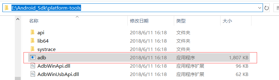 找到Android Studio SDK文件所在位置,SDK-------------> platform-tools----------------> 找到adb,把绝对路径复制下来E:\Android_Sdk\platform-tools\ 。