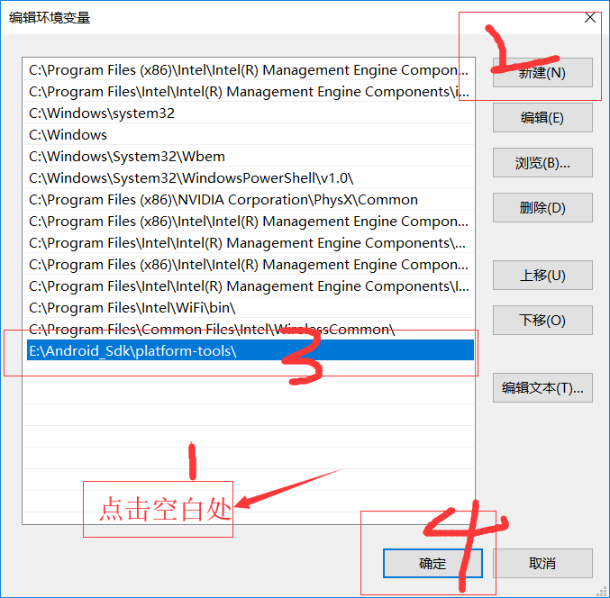 3 .在电脑的高级设置里面把环境变量Path改下就OK,在Path后面追放你的adb绝对路径(如上图:)注意前面以;隔开