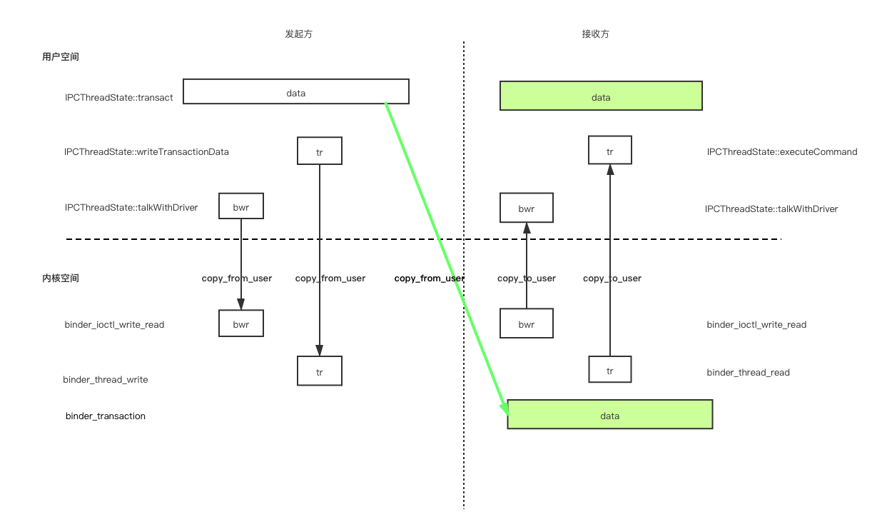 下面这图是从Binder在进程间数据通信的流程图,从图中更能明了Binder的内存转移关系