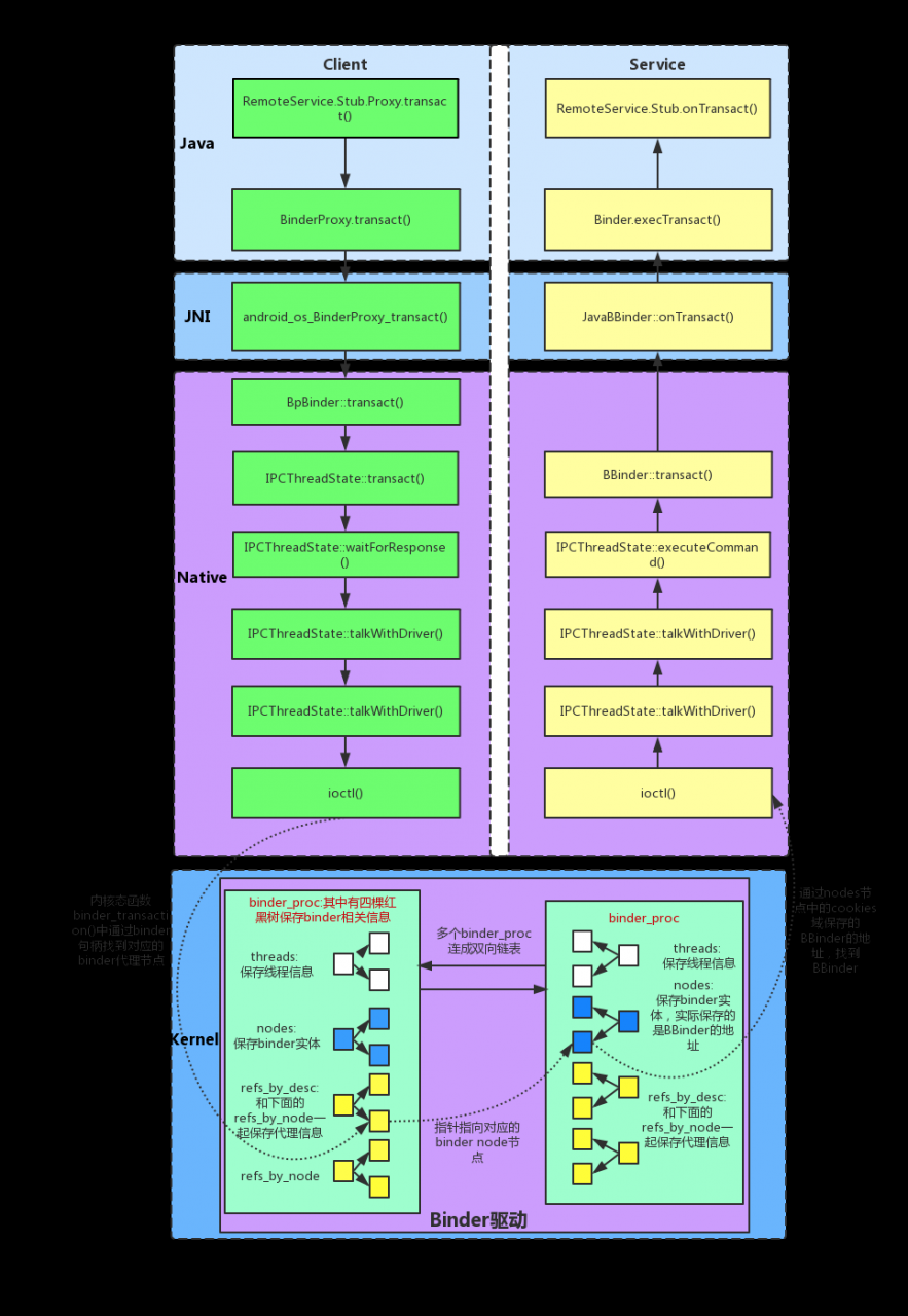 Binder分层java层和native 层;中间的jni层可以忽略.