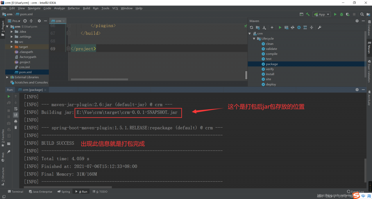 </build>注:此代码块放到 </dependencies> 后,</project> 之前
