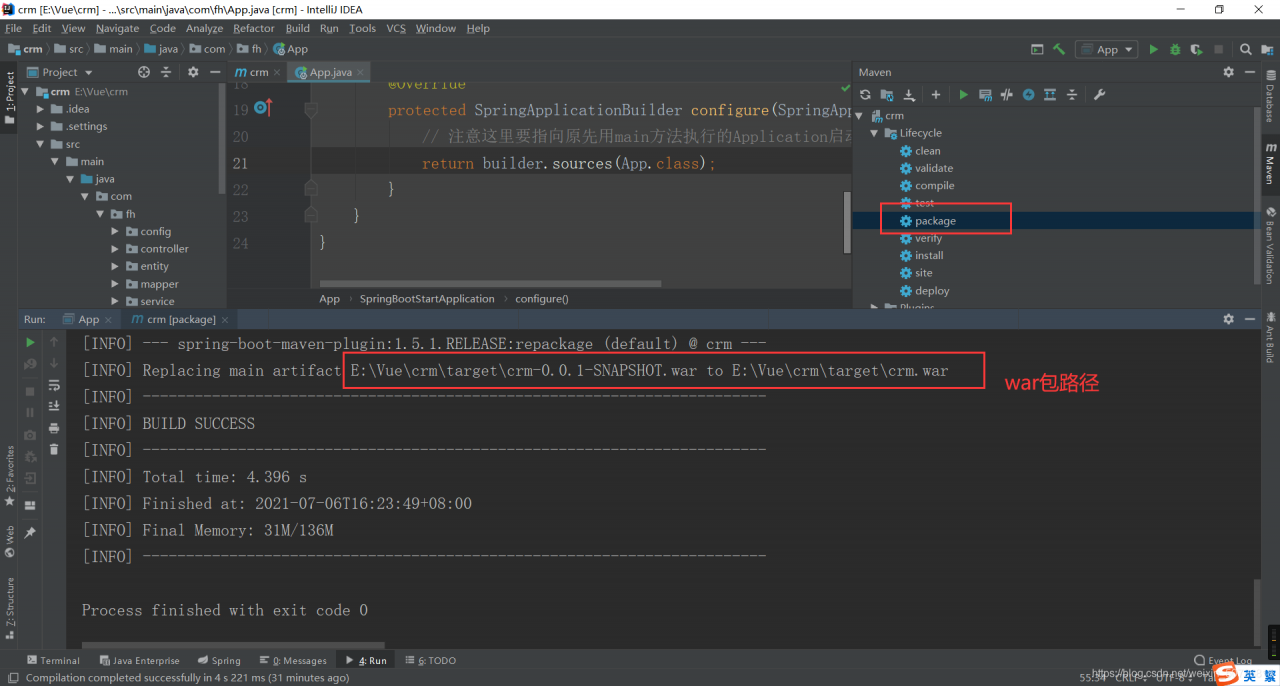 修改启动类,继承 SpringBootServletInitializer 并重写 configure 方法