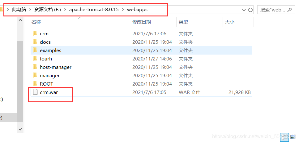 4、然后将war包放入服务器tomcat中webapps下启动即可。