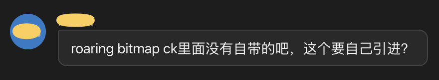 A:当然是自带的。其实RoaringBitmap正是ClickHouse位图的底层实现(笑