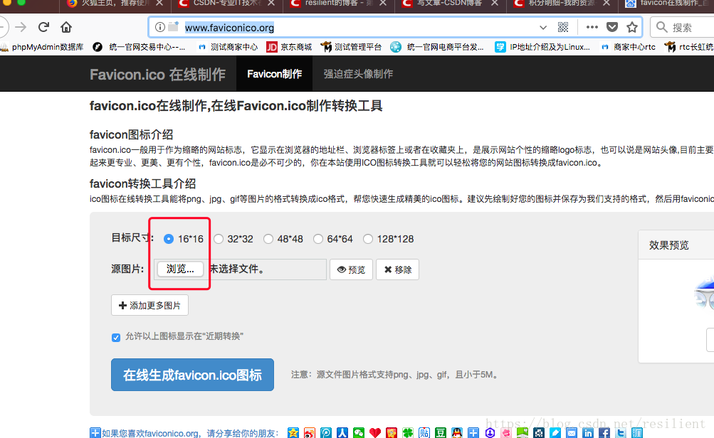 修改favicon.icon图标1.favicon.icon的图标在网站中一般默认在根目录下2.使用在线生成favicon.icon图片网址http://www.faviconico.org/3.保存生成的favicon.icon图标 将图标放到根目录下面版权声明:本文为resilient原创文章,遵循CC 4.0 BY-SA版权协议,转载请附上原文出处链接和本声明。原文链接:https://blog.csdn.net/resilient/article/details/82352649