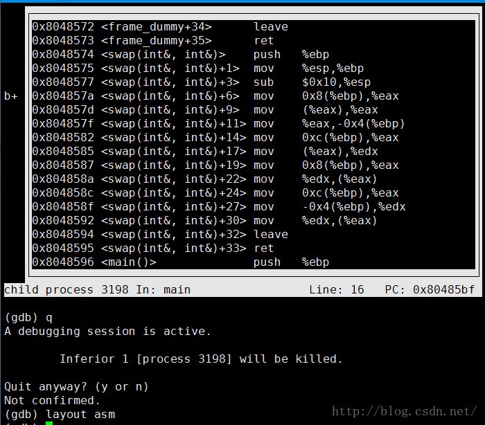之前想验证一些关于堆栈的问题,但是没什么好方法,printf实在局限,流于表面,只间表象(值、范围、规律)不见真身(地址、寄存器、过程),所以想到了gdb——一个强大的调试工具,还能看汇编代码,现在先把这两天学的常用的命令做一个小结,以后有用到的可能再来更新一下: