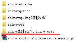 与其它java开源框架类似,将shiro的jar包加入项目就可以使用shiro提供的功能了。shiro-core是核心包必须选用,还提供了与web整合的shiro-web、与spring整合的shiro-spring、与任务调度quartz整合的shiro-quartz等,下边是shiro各jar包的maven坐标。