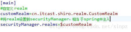 需要在shiro-realm.ini配置realm注入到securityManager中。