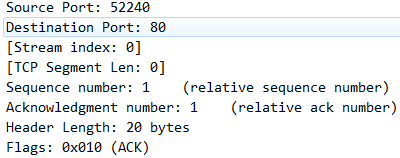 3) 第3步 :客户端收到这个同步确认数据包后,再对服务器进行一个确认。该数据包中,序列号是上一个同步请求数据包中的确认号值,确认号是服务器的初始序列号+1。