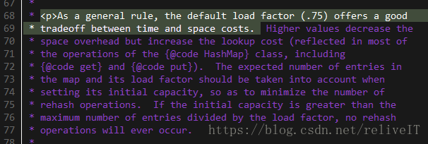 load factory=0.75的真正原因,在java7、8等中均有注释(这段注释在public class HashMap类定义之前,附注的注释即本文所讨论的注释是在HashMap类定义之后),如下图所示,负载因子太小了浪费空间并且会发生更多次数的resize,太大了哈希冲突增加会导致性能不好,所以0.75只是一个折中的选择,和泊松分布没有什么关系。