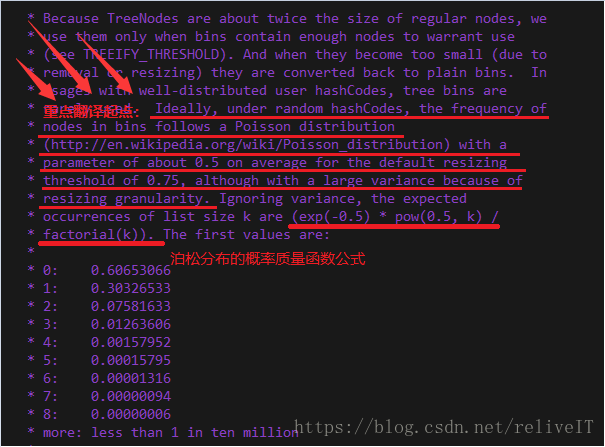 三、注释中load factor和泊松分布的关系