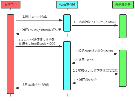 访问一个业务页面时,可通过OAuth验证接口获取此用户信息 → 根据code获取userId → 根据userId获取微信信息。