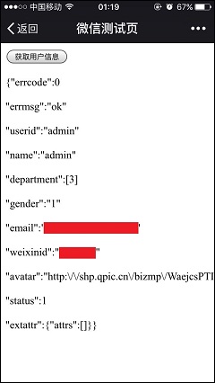 说明:调用此接口后将会获得此访问者在企业号登记的具体信息;如:姓名、微信号、手机号、邮箱、职位等等。