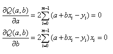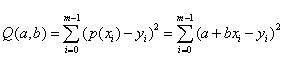 线性拟合的原理:给定一组数据(xi,yi),i = 0,1,2,3,...,m-1,做拟合直线f(x) = a + bx,均方误差为: