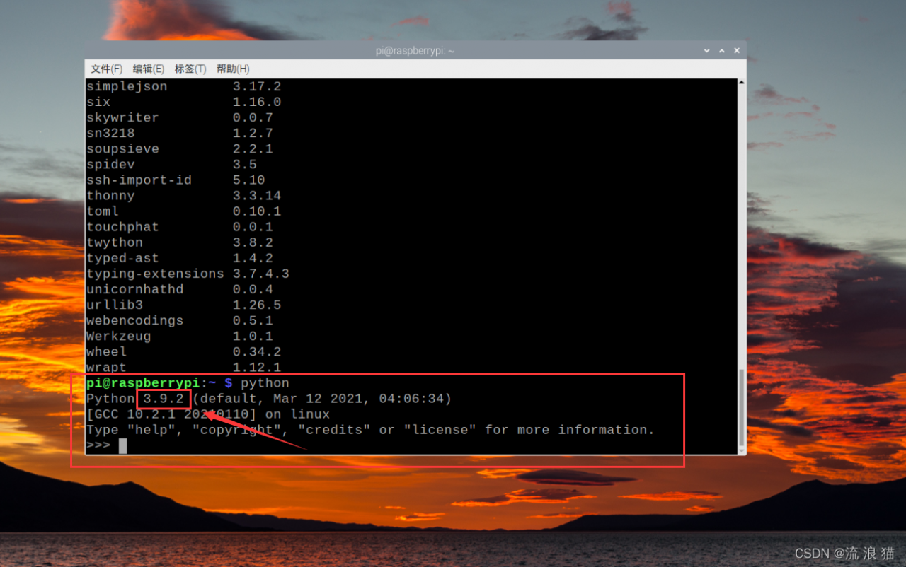 显然我需要下载上图中箭头指向的 whl 文件。如何知道自己需下载哪一个呢?这里我讲一下,笔者这里讲解的是箭头所指的 whl 包,它的OpenCV版本为4.5.5.62,所需Python版本为3.9【cp39对应Python3.9,cp37对应Python3.7】,需使用armv7l架构的Linux系统