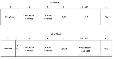 Ethernet II和IEEE 802.3的帧格式: