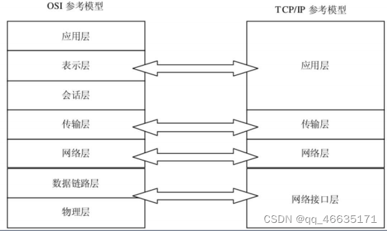 TCP/IP四层模型称为标准模型,TCP/IP五层模型称为对等模型。