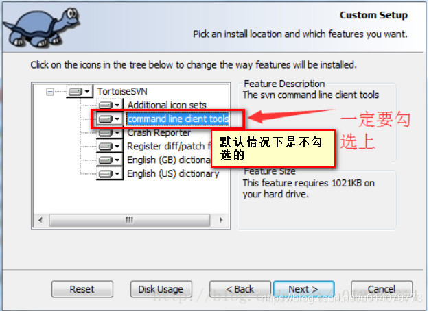 注意:安装svn的时候一定要勾选第二项,否则idea用svn下载代码会报系统找不到指定的文件: