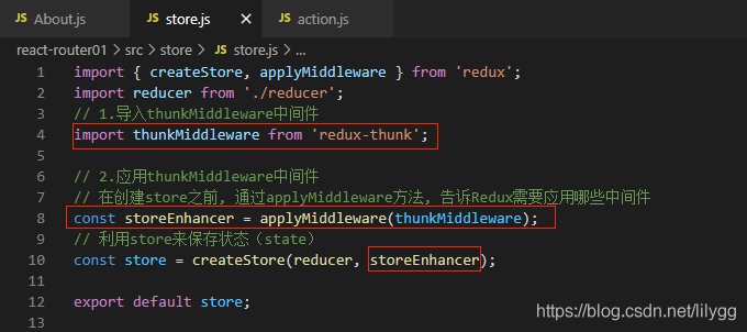 - 2.在创建 store 时,应用 redux-thunk 中间件