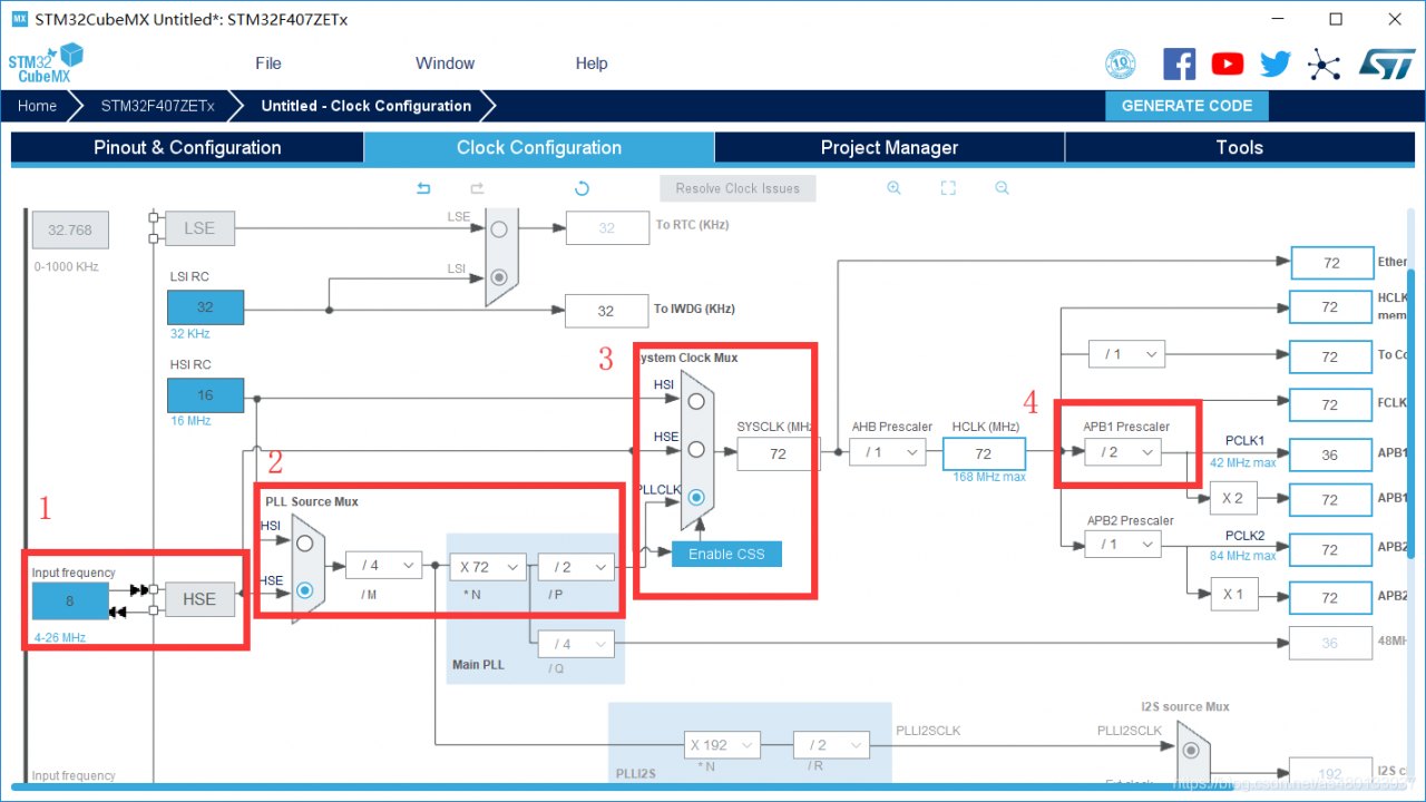 32的时钟树框图 如果不懂的话请看《【STM32】系统时钟RCC详解(超详细,超全面)》