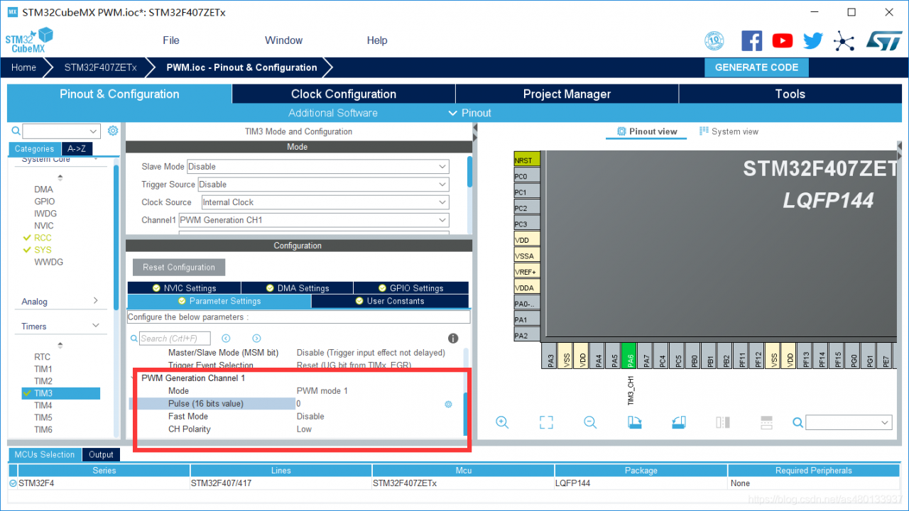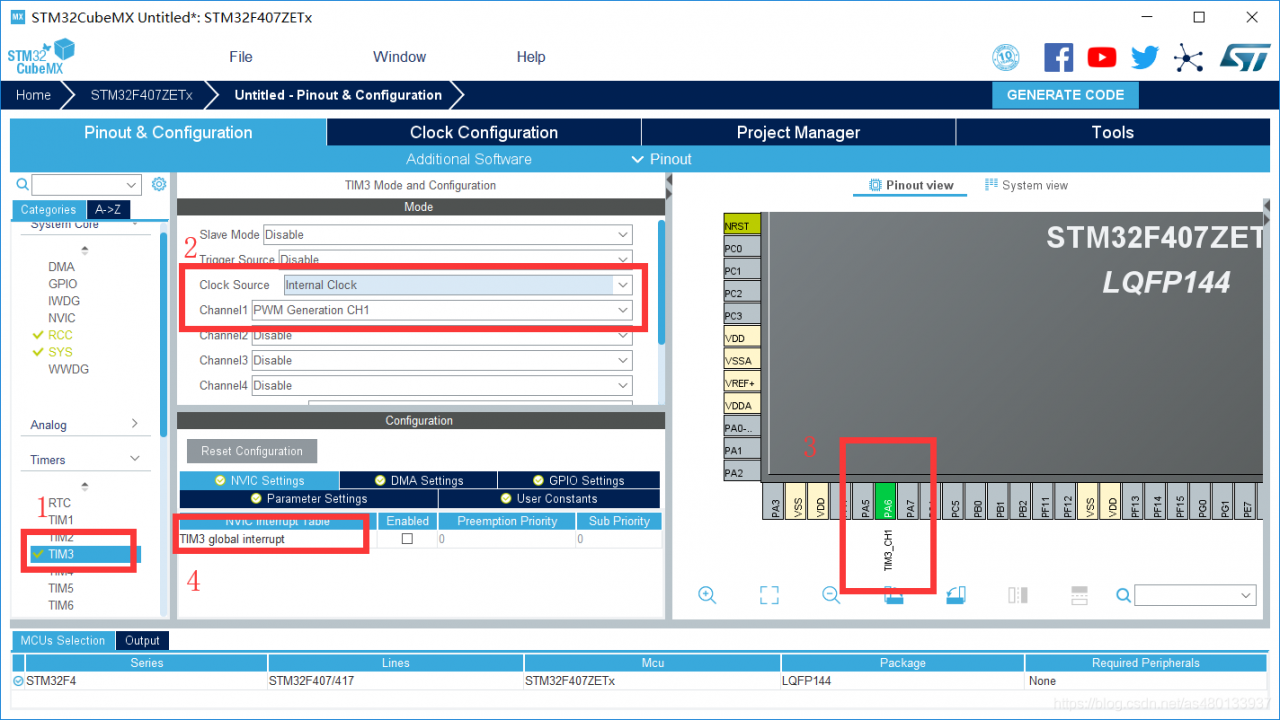 /* USER CODE END 1 */然后使能TIM3的PWM Channel1 输出。