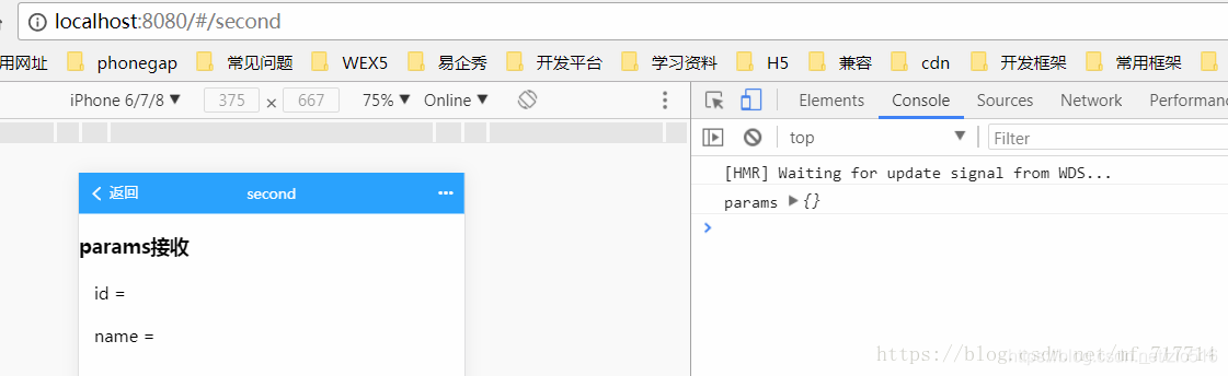 如果路由后面没有 /:id/:name效果如下图,地址栏没有参数