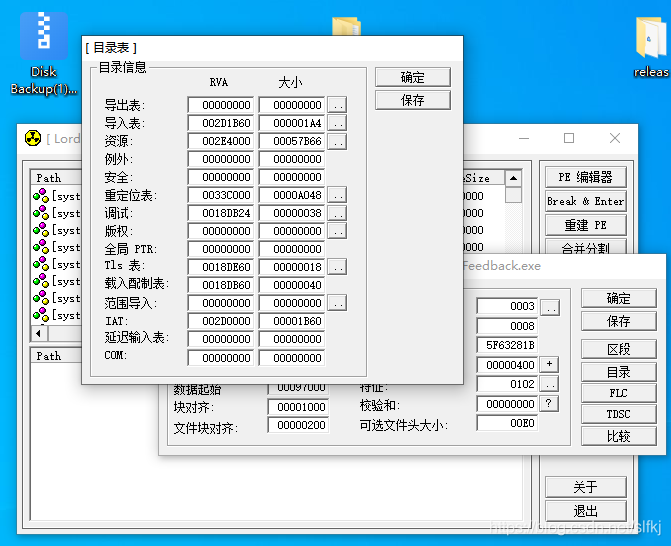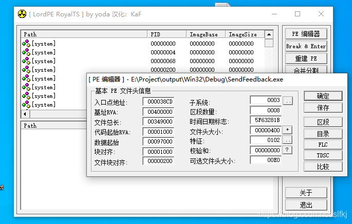 1.拖动文件到lordPE里面,弹出一个对话框