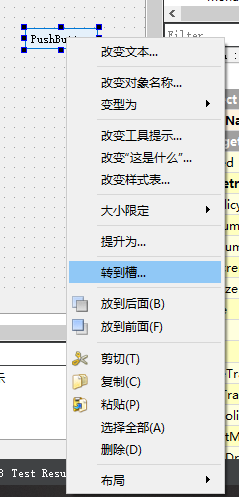 1、以按钮为例,首先添加一个按钮,对象名为pushButton,在按钮是右键单击选择“转到槽”即可,在转到槽选择面板(右图)里面选择需要进行的操作,比如单击clicked()