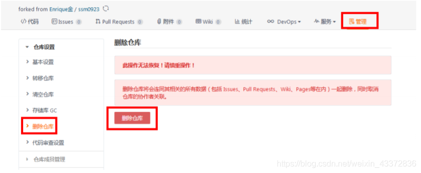 删除仓库: