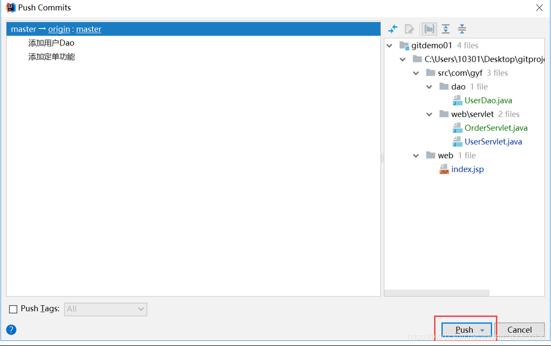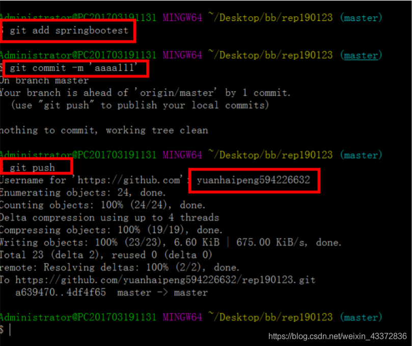 步骤2: git push 将本地仓库提交到远程(注意先提交到缓存区,再提交到仓库,最后提交远程)