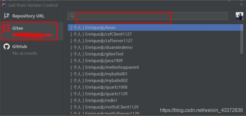 - 在IDEA中从码云下载项目,下载的地址就是在git中克隆的位置