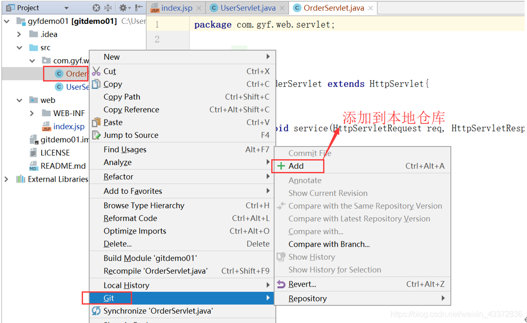 如果不小心选中了No,可以通过另一种方式添加到本地仓库缓存 如图,点击文件右键 |