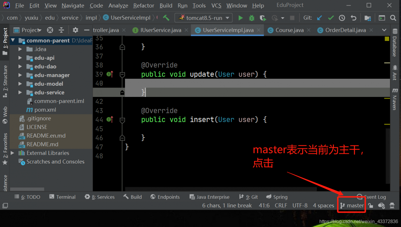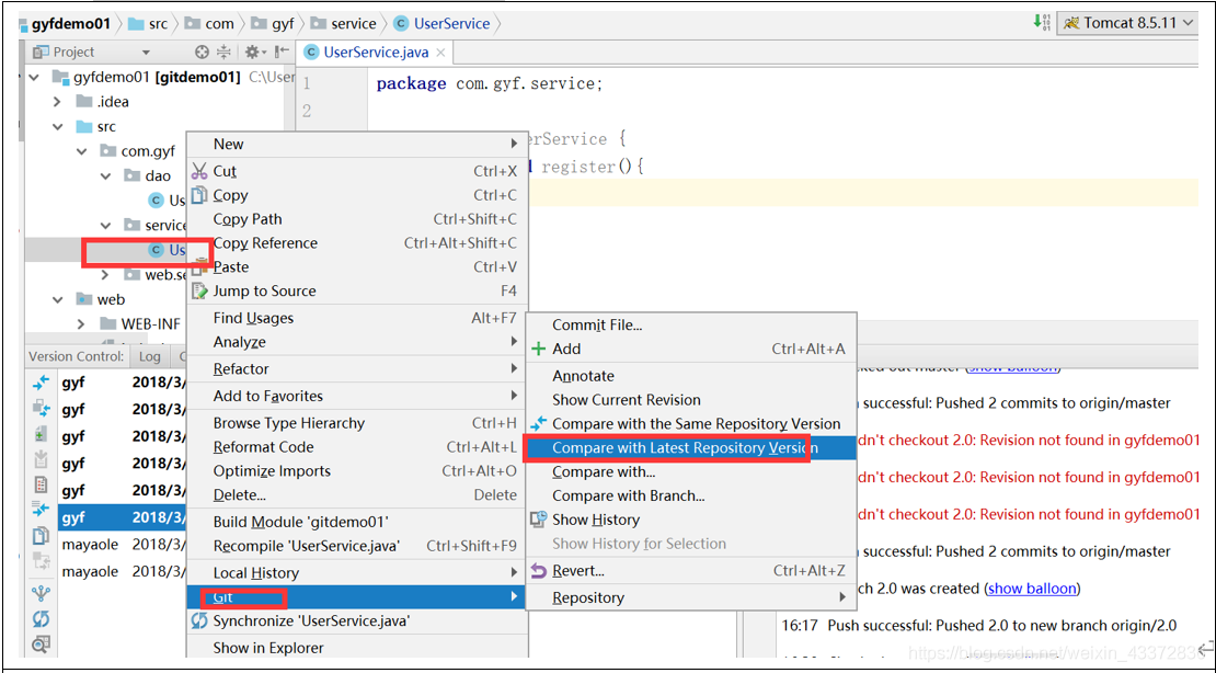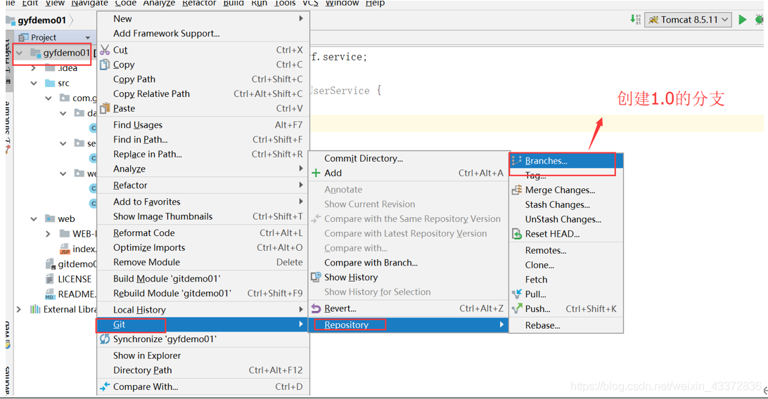 - 再写点功能,再写个UserService提交,然后发布1.0版本,添加分枝