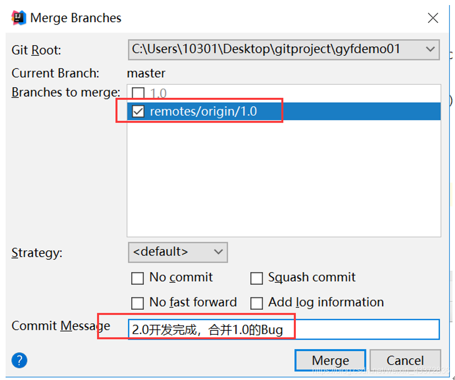- 将master分枝与1.0分枝合并