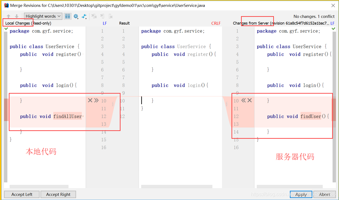 - 然后push到服务器会失败,因为代码冲突了