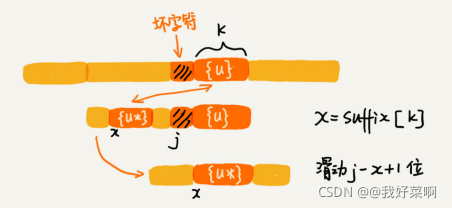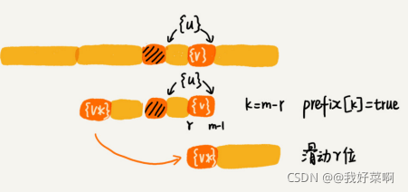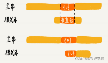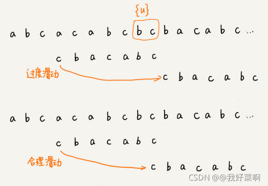 如果在模式串中找不到好后缀{u}匹配的另外的子串,就直接将模式串滑动到好后缀{u}的后面。