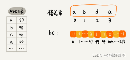 int[] bc = new int[SIZE];//记录模式串中每个字符出现的位置