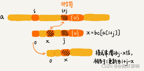 //这里将等同于模式串往后滑动j-bc[(int)a[i+j]]位