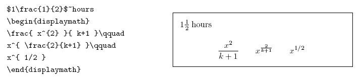 6、分数(fraction)使用\frac{...}{...} 排版。一般来说,1/2 这种形式更受欢迎,因为对于少量的分式,它看起来更好些。