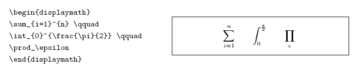 \sum_{i=1}^{n} \quad \int_{0}^{\frac{\pi}{2}} \quad \prod_{\epsilon}